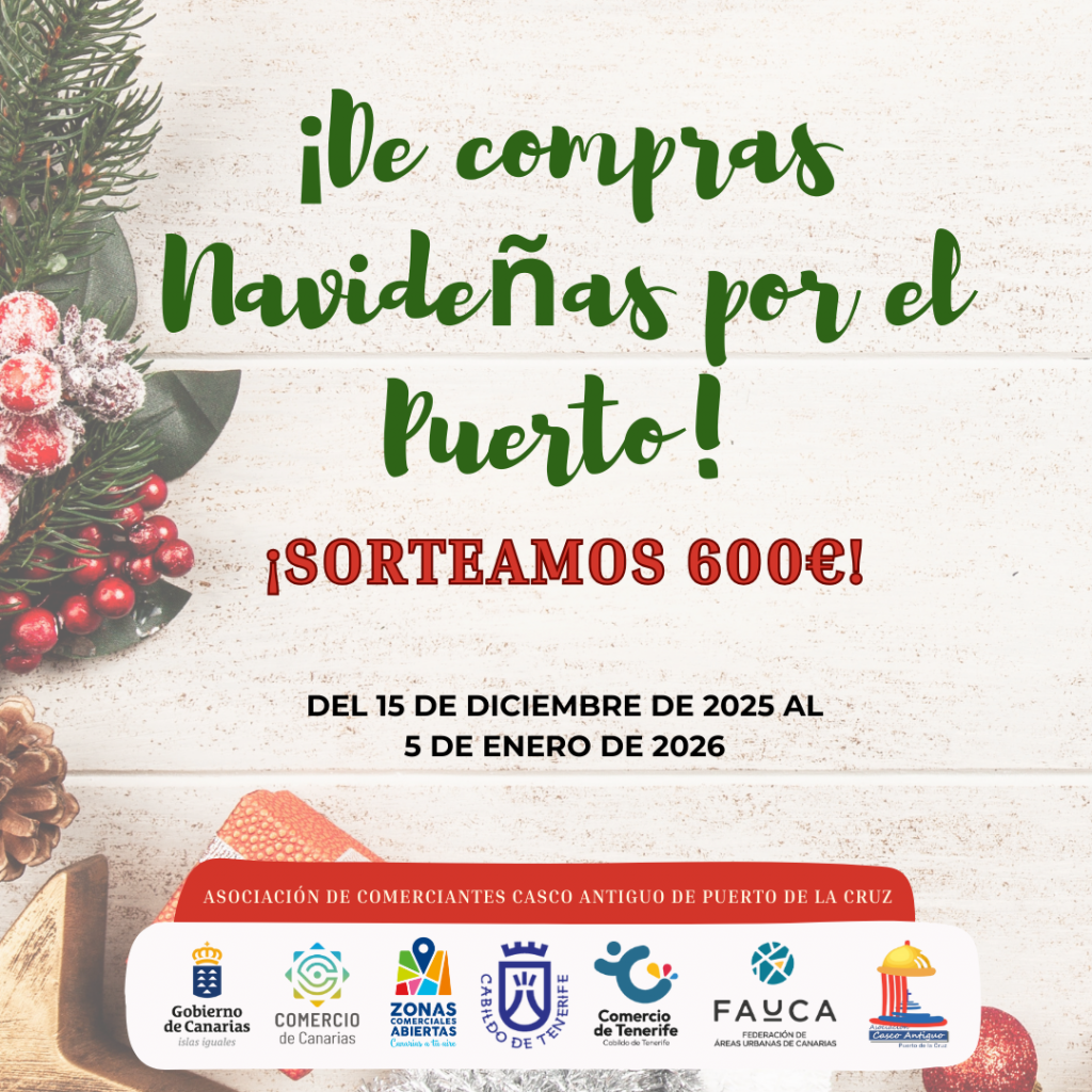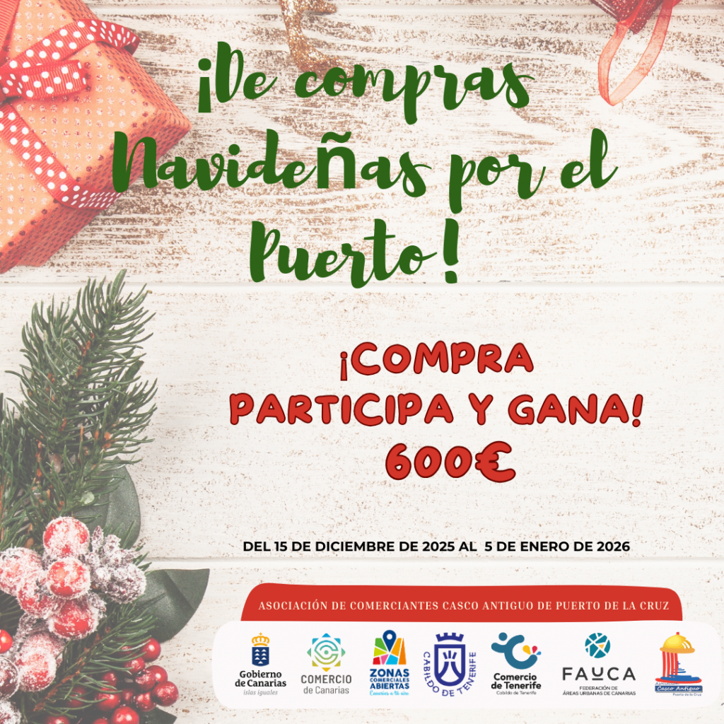 La Asociación de Comerciantes Casco Antiguo de Puerto de la Cruz impulsa un año más su campaña navideña, una acción estratégica diseñada para dinamizar las compras en el comercio local durante unas fechas clave para la economía del municipio.