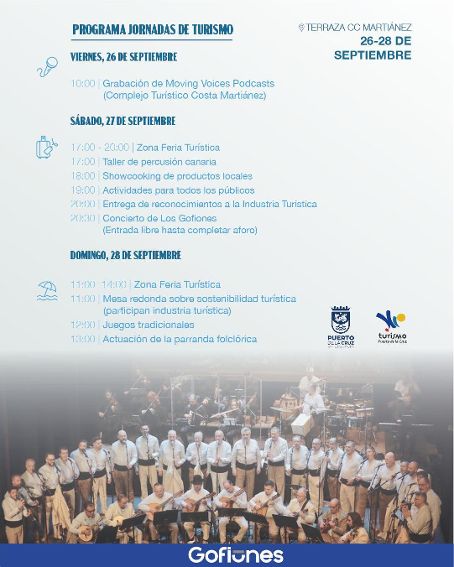 El acto central será el sábado 27 de septiembre, con la entrega de los reconocimientos y el concierto del grupo Los Gofiones, considerado uno de los máximos referentes del folclore canario. La actuación, con entrada libre hasta completar aforo, será un homenaje a la identidad cultural de Puerto de la Cruz.