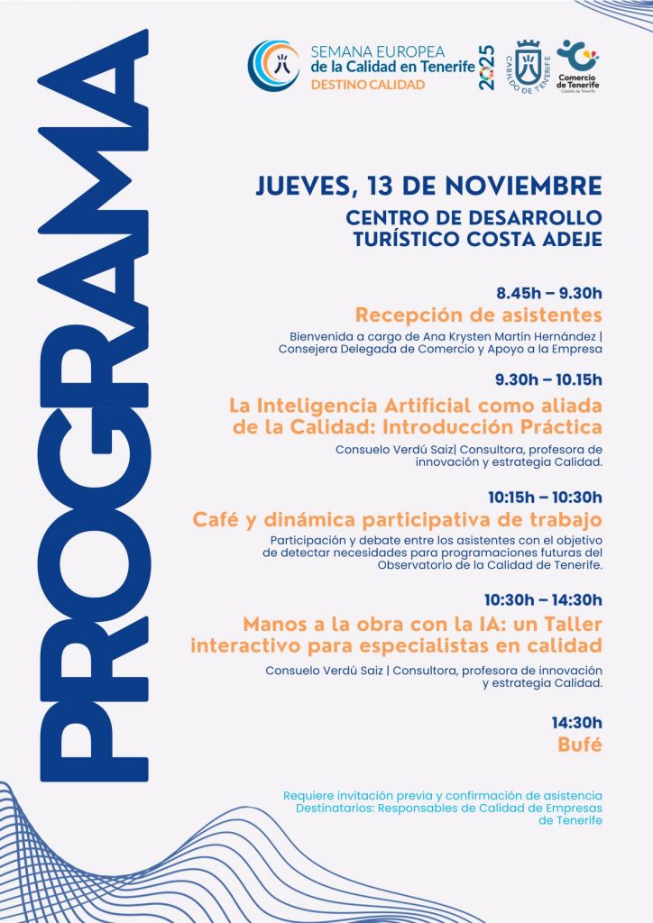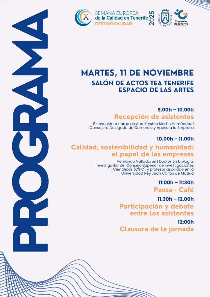 El Cabildo de Tenerife organiza por duodécimo año una nueva edición de la Semana Europea de la Calidad (www.semanacalidadtenerife.org), una celebración en la que los habitantes de la isla se convierten en una parte fundamental al participar en las actividades que se desarrollan durante todo el mes de noviembre, con especial énfasis del 10 al 14.