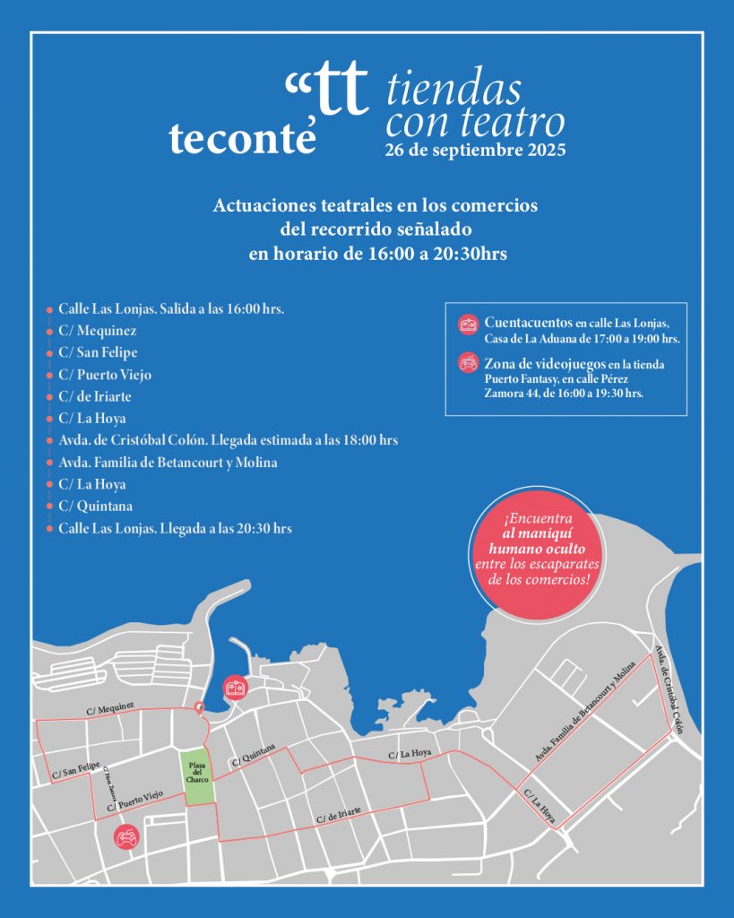 «Teconté» es una actividad cultural y teatral diseñada para fomentar las visitas a los comercios locales. Un grupo de seis actores, un cuentacuentos y un maniquí humano recorrerán las zonas comerciales, atrayendo al público hacia las tiendas con dos objetivos principales: